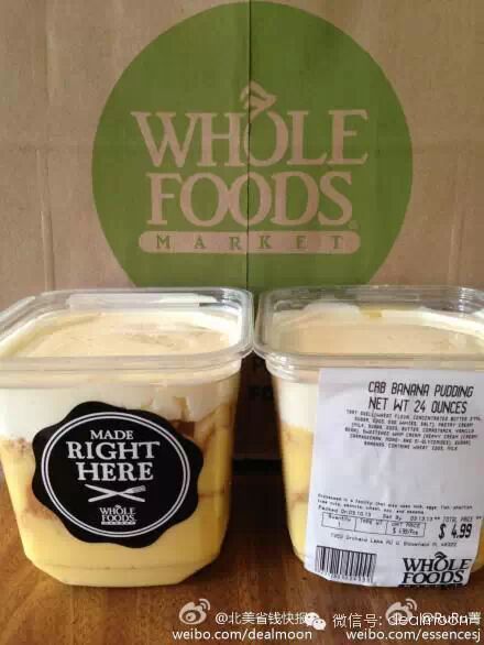 2.这绝对是我吃过的最好吃的香蕉甜品,没有之一!Banana pudding from Whole Foods Market,每次买我都得预定,当天很难有货啊。香蕉、饼干和cream的完美结合,好东西必须大家分享!密歇根售价$4.99, 物美价廉超乎想象